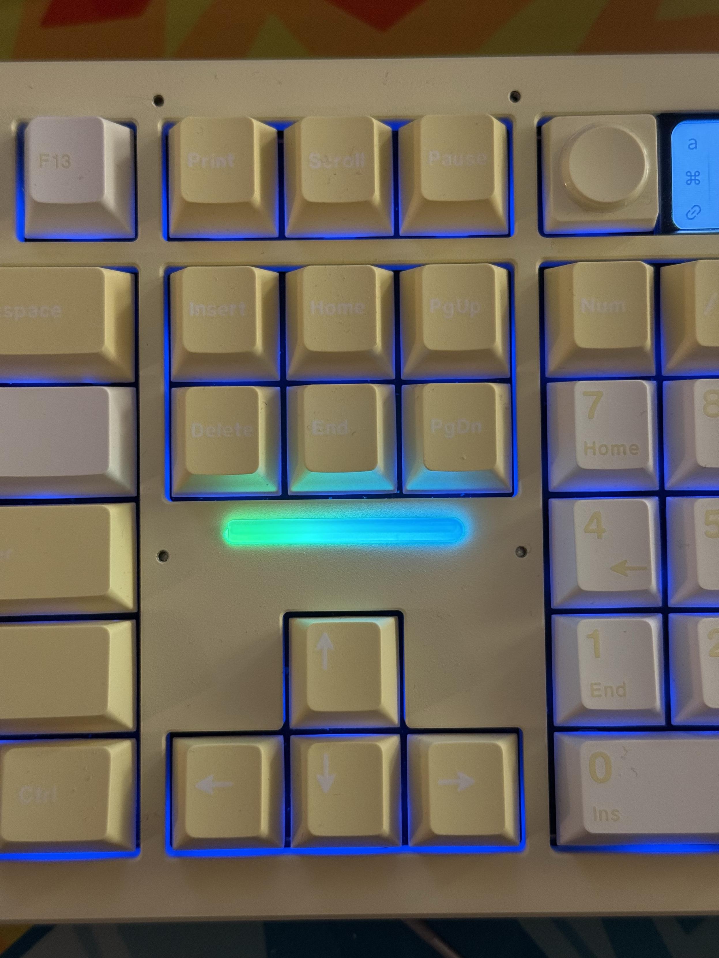To map the encoder I needed to delve into the Layout section in VIA and then I could select the Encoder on various layers and remap the push, clockwise and counterclockwise bindings. By default these are mapped as CUSTOM(16), CUSTOM(15), CUSTOM(14), which you can find by mousing over LCD Mode -, LCD Mode + and LCD TOGG in the “Custom” tab of the Keymap section. Again just mapping these straight to the knob for super quick and easy access to the LCD functions made sense, and I chose to avoid mapping Volume since I almost never use it (my open laptop has volume controls if I really need them.) Oh and while we’re on the topic of the LCD, but default it shows the key being pressed which is super, super distracting – Fn + Shift + Del turns this off. Fn + Shift + PgUp/PgDn also control the LCD brightness, though these mappings don’t seem to make sense in VIA or Chilkey’s own web driver (they appear as LCD Mode + and -). Re-binding these to an arbitrary letter shows they are mappable, but for some reason “LCD Mode +” and “LCD Mode -” behave differently depending on where they are mapped. Weird!
